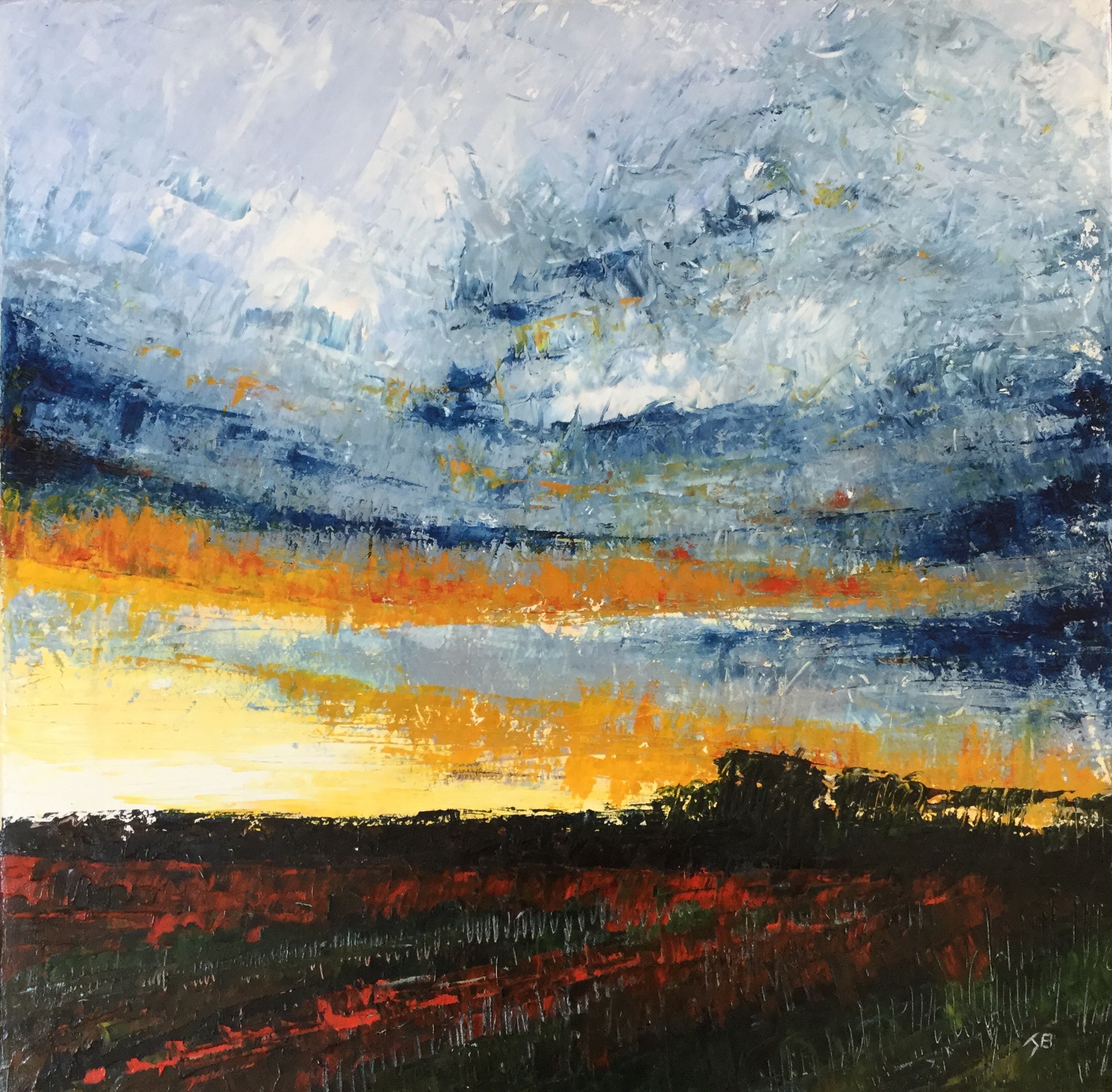 Summer Sunset, Wiltshire countryside , Oil on Canvas with palette-knife.